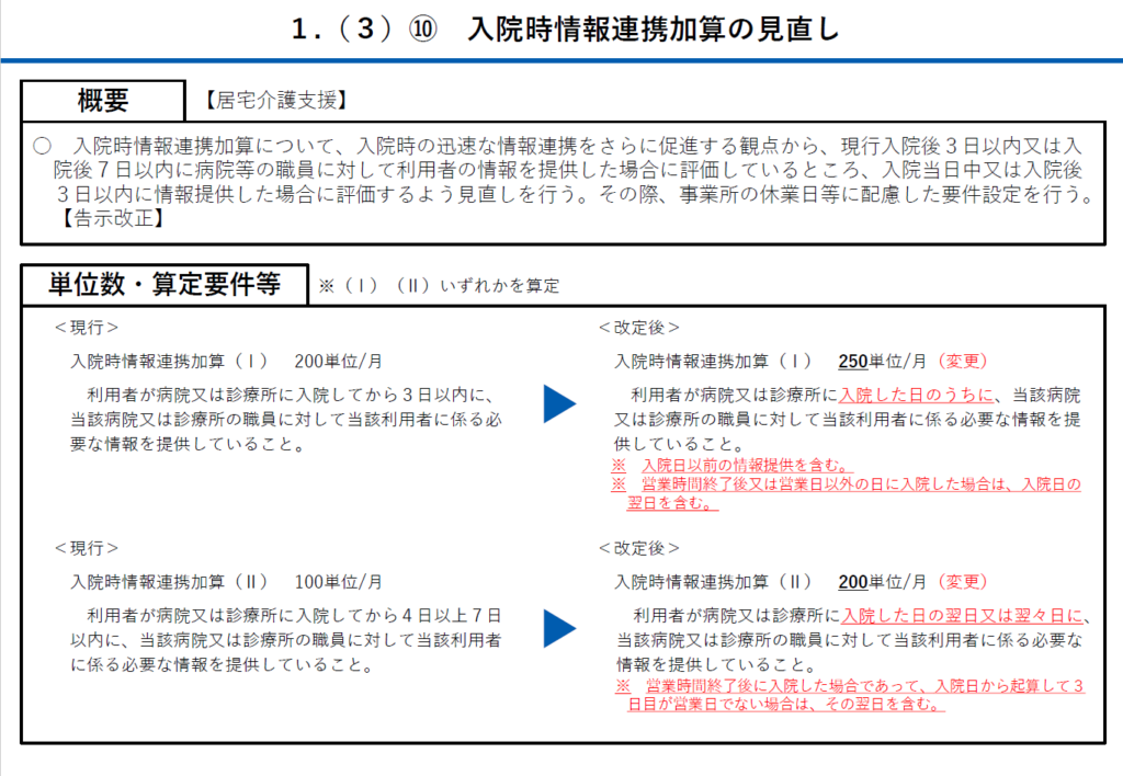| 入院時情報連携加算Ⅰ | 月200単位 | 月250単位 | +50単位 |
